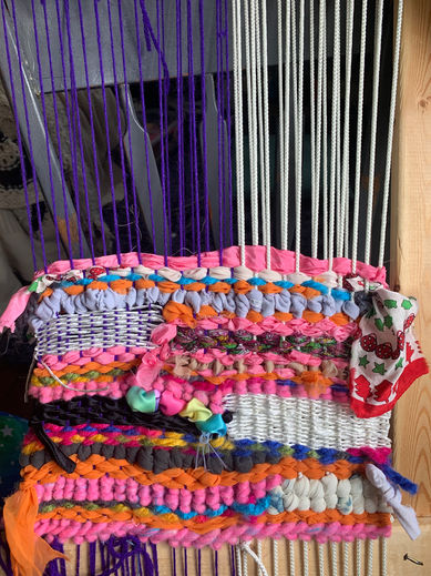 "Weighted" is a Woven blanket, made up of 9 independent weaving panels, all created from recycled materials.